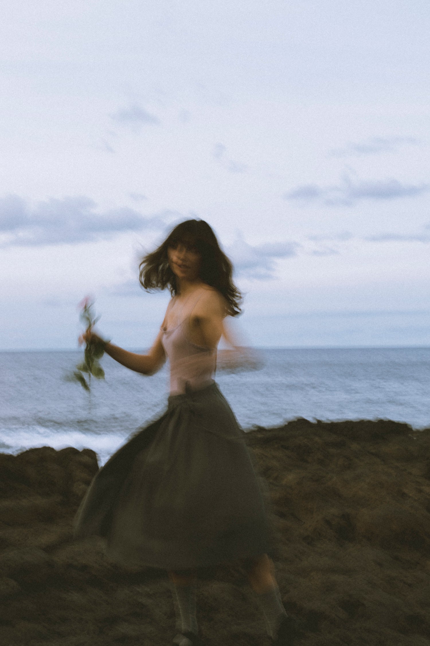 En esta serie, el cuerpo se vuelve tránsito, la forma se vuelve gesto. La roca y el mar —testigos de lo inmóvil y lo cambiante— acogen una danza efímera que no busca quedarse, sino desaparecer justo cuando empieza a florecer.